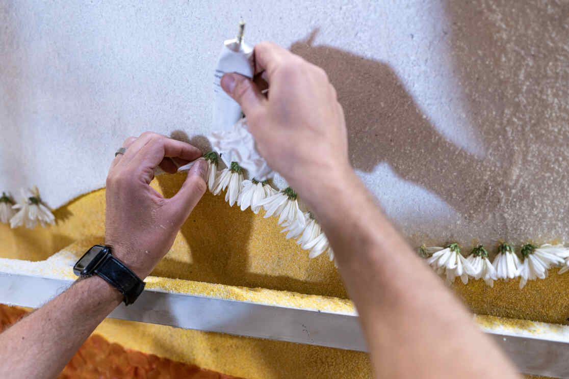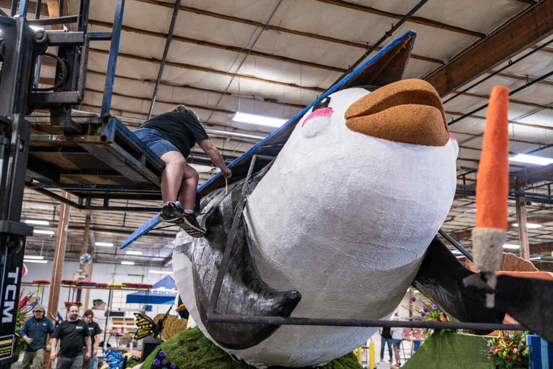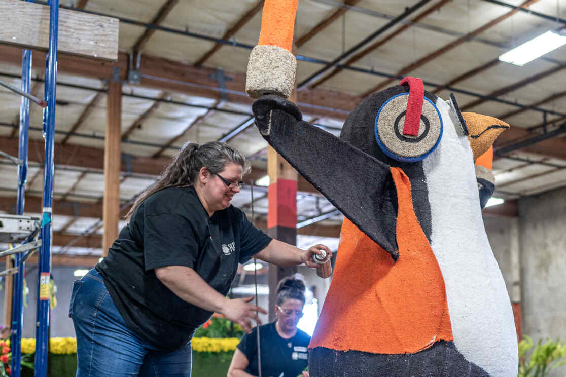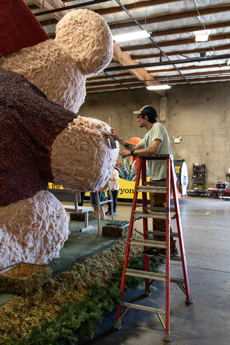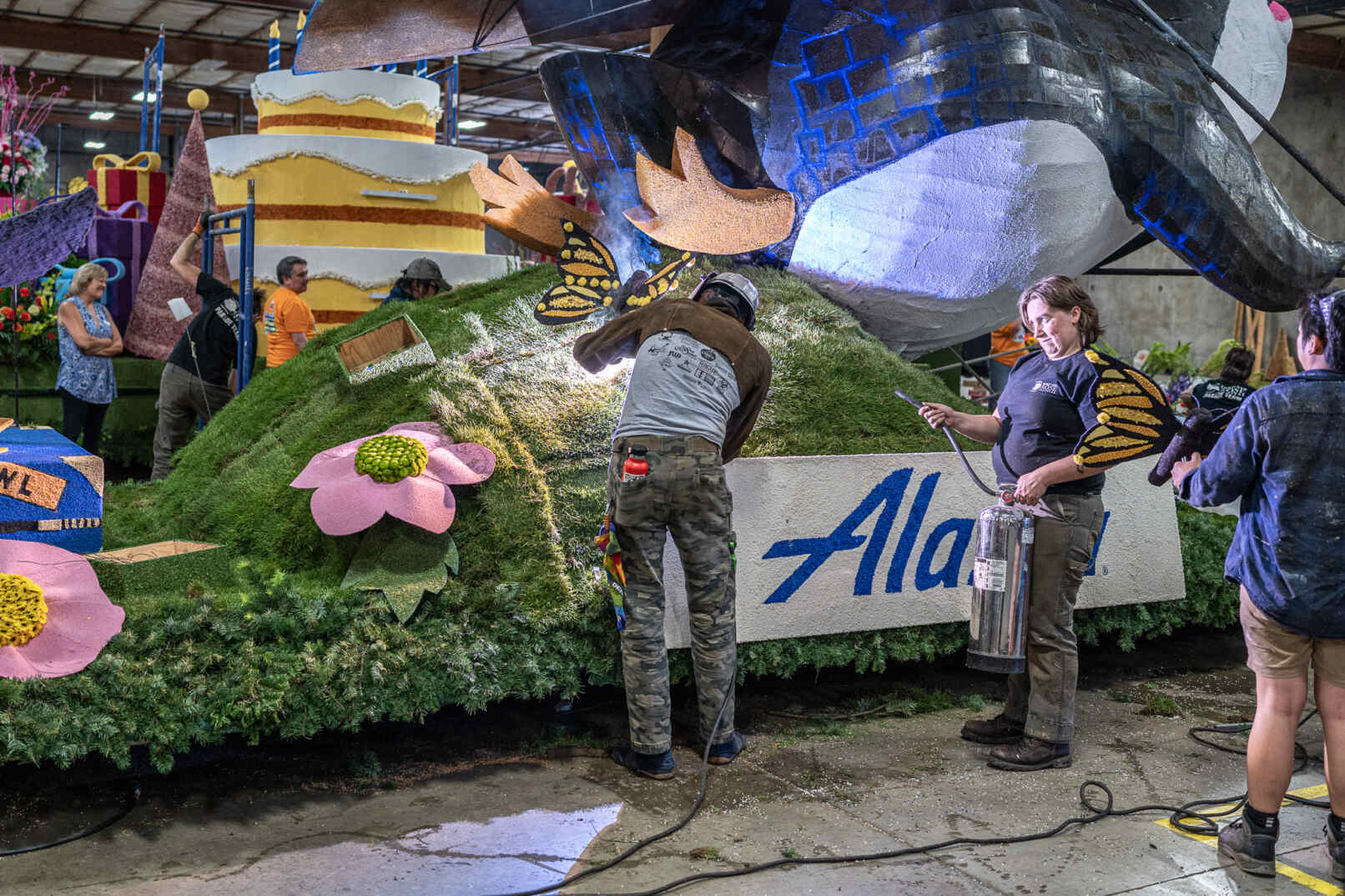 Decorating a float for the annual Rose Parade in Portland involves an incredible amount of detailed work, largely carried out by dedicated volunteers. These volunteers meticulously apply natural materials by hand, often working long hours to ensure every inch of the float is covered.