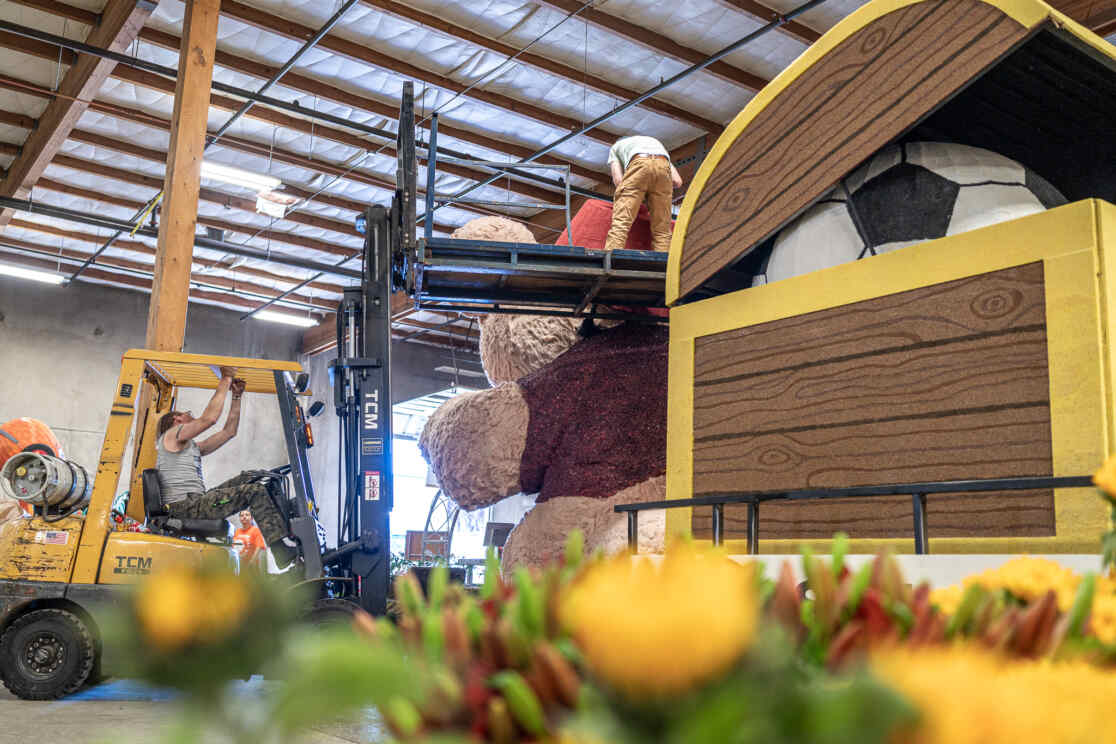 Decorating a float for the annual Rose Parade in Portland involves an incredible amount of detailed work, largely carried out by dedicated volunteers. These volunteers meticulously apply natural materials by hand, often working long hours to ensure every inch of the float is covered.