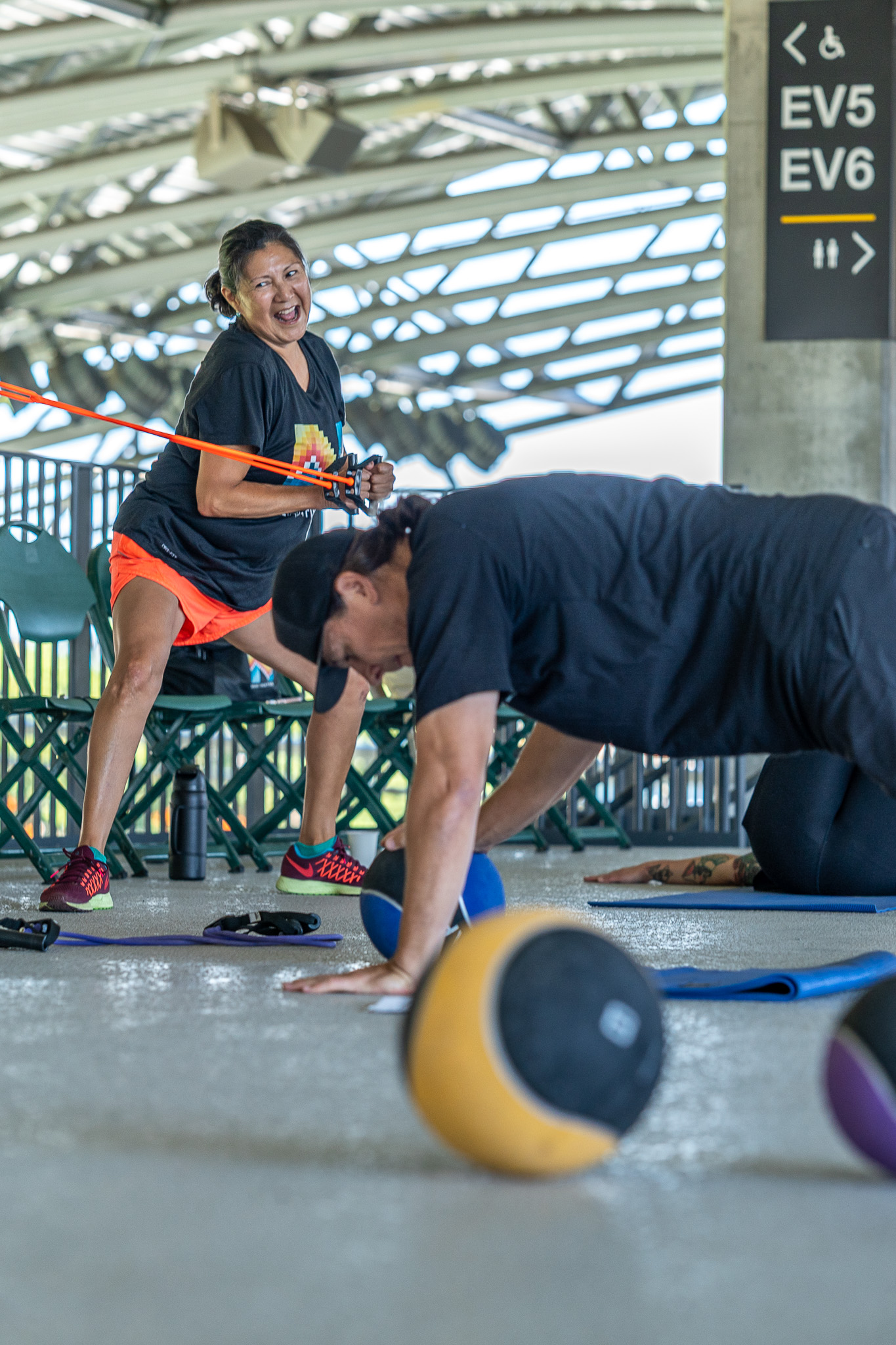 In workshops and training sessions they engaged in intense circuit training, running, facial care, Elder-focused movements, breathwork, and indigenous nutrition.