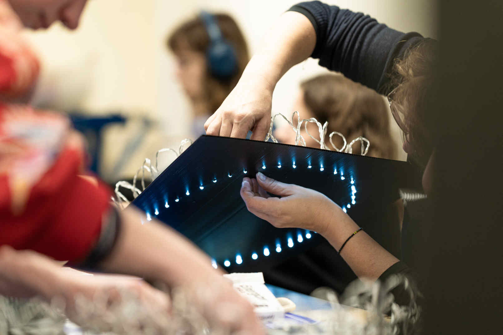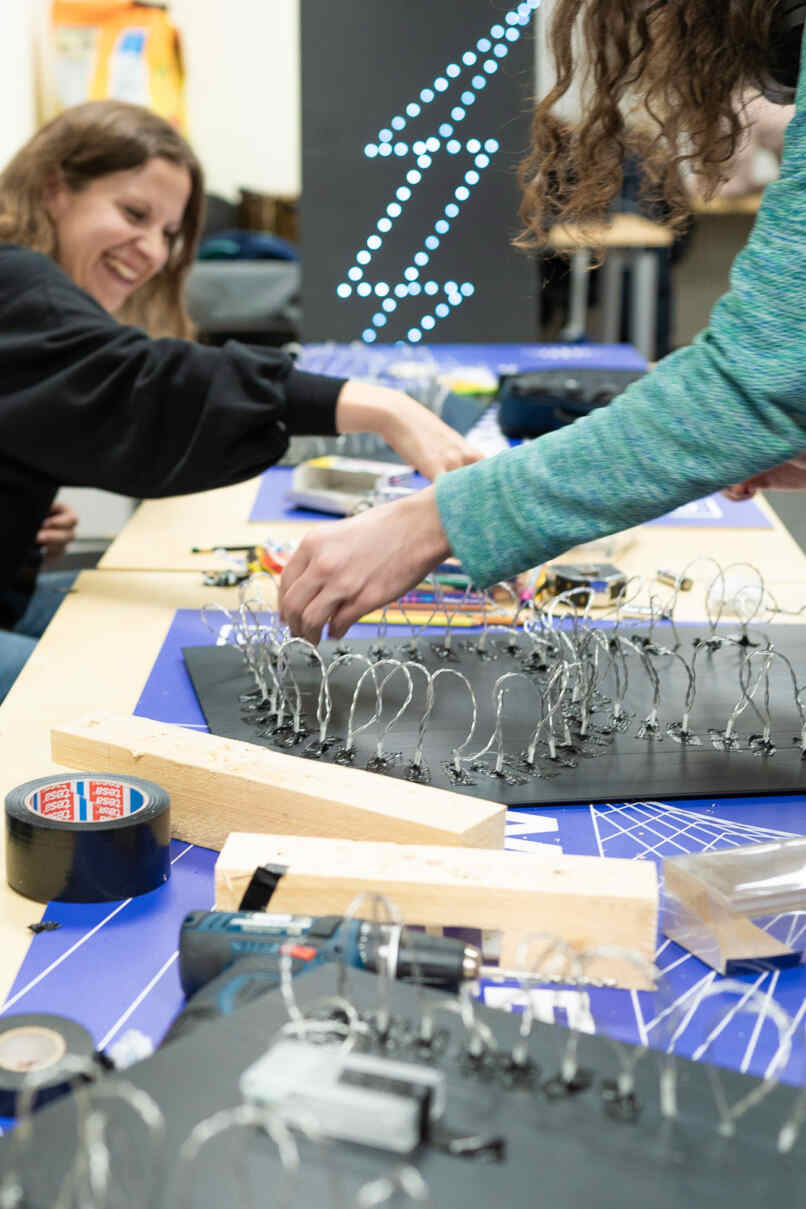 Photo-documentary capturing a LED-letter DIY Workshop, highlighting international community focus on climate and energy justice advocacy. Organized by NGO 350.org.Berlin, Germany; 2023.